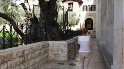 A kertben látható az a szikla is, amely mellett – a hagyomány alapján – Jézus imádkozott, mielőtt Júdás elárulta Őt.